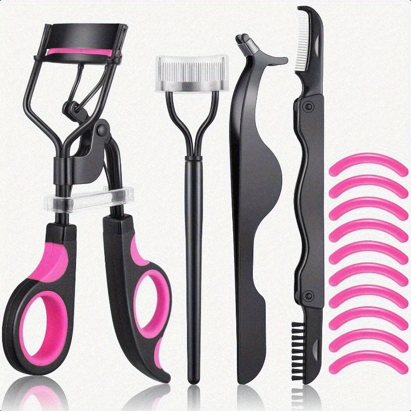 Eyelash Curler Kit with Comb, Brush, Tweezers & Trimmer – 14pcs Black/Purple