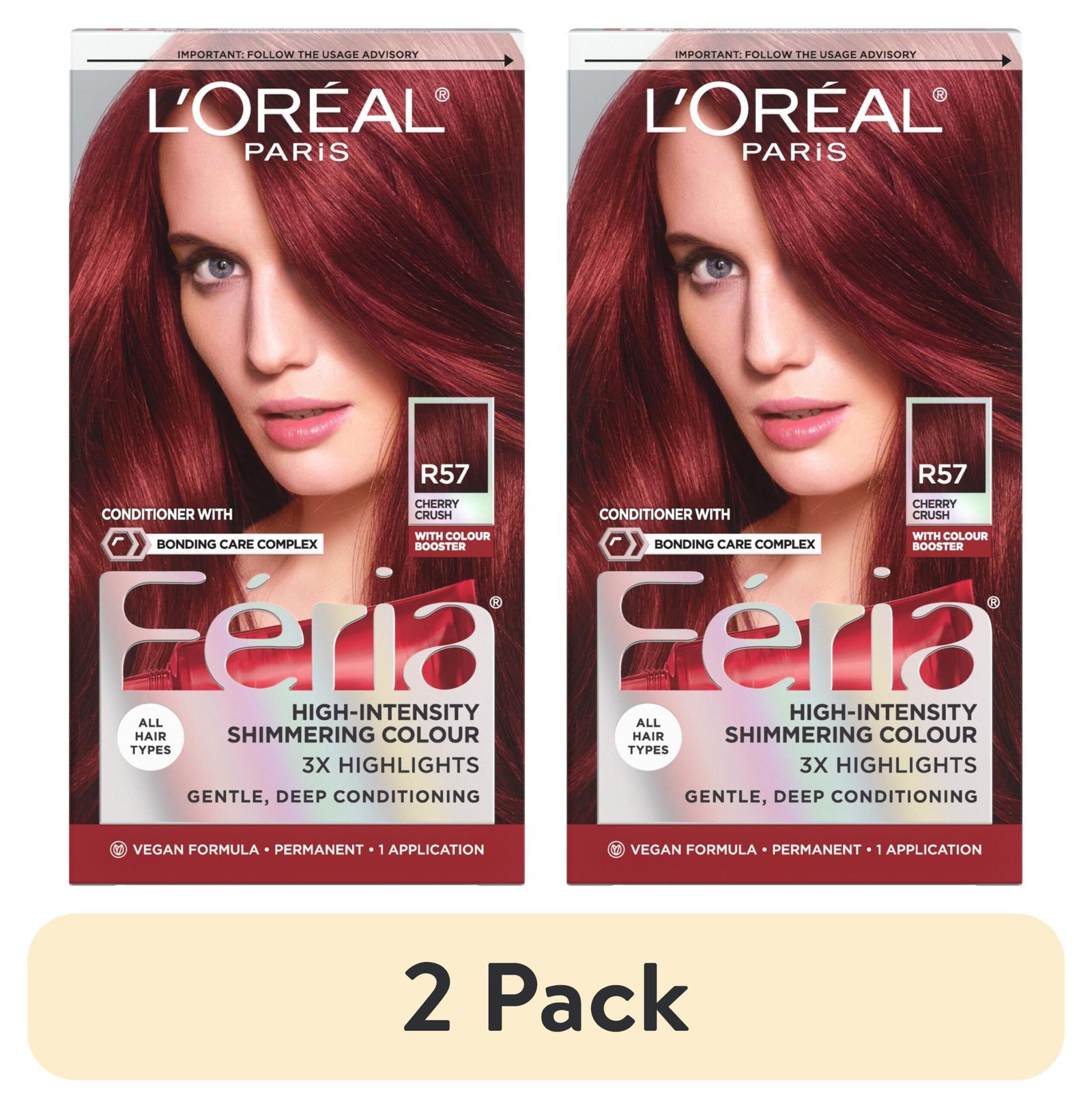 L’Oreal Paris Feria Shimmering Permanent Hair Color, R57 Cherry Crush, 1 Kit