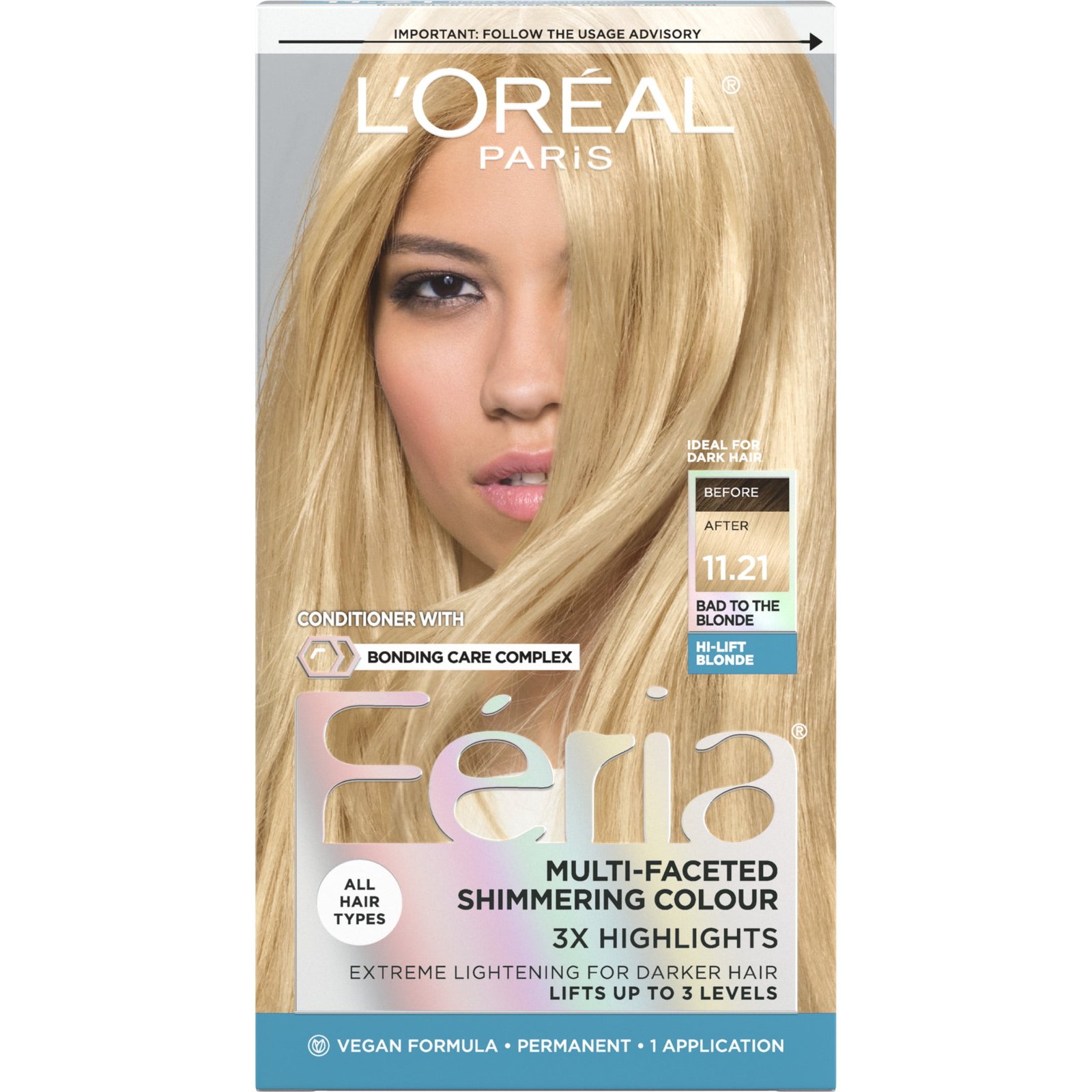 Get ready for vibrant, head-turning hair with Feria’s shimmering, permanent color, expertly crafted by L’OrĂ©al Paris colorists. Paired with the Bonding Care Complex Conditioner, it helps repair and strengthen weak hair bonds, ensuring your hair stays strong and healthy-looking while radiating bold, luminous color.
