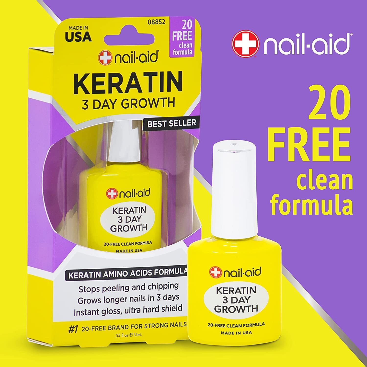 Transform your nails with the Nail Aid 3-Day Growth Keratin Amino Acids Formula for rapid, stunning results!